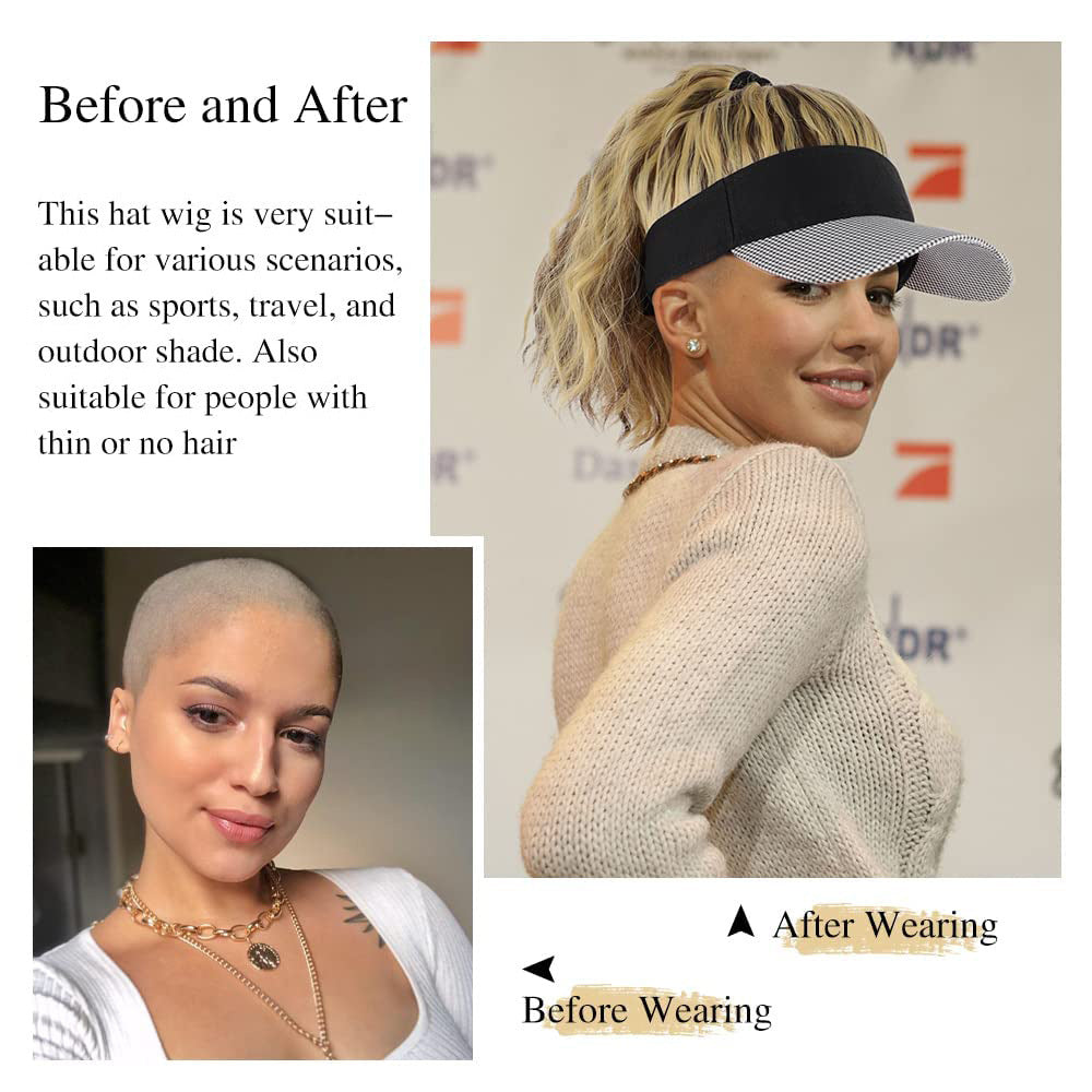 Wig Hat Integrated Women's Fashion Ponytail Wool Fiber Hair Houndstooth Cap Baseball Hat Wig